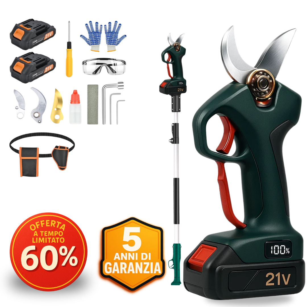 Queste forbici elettriche garantiscono tagli precisi e veloci, eliminando il dolore al polso e aumentando l'efficienza del tuo lavoro in giardino.