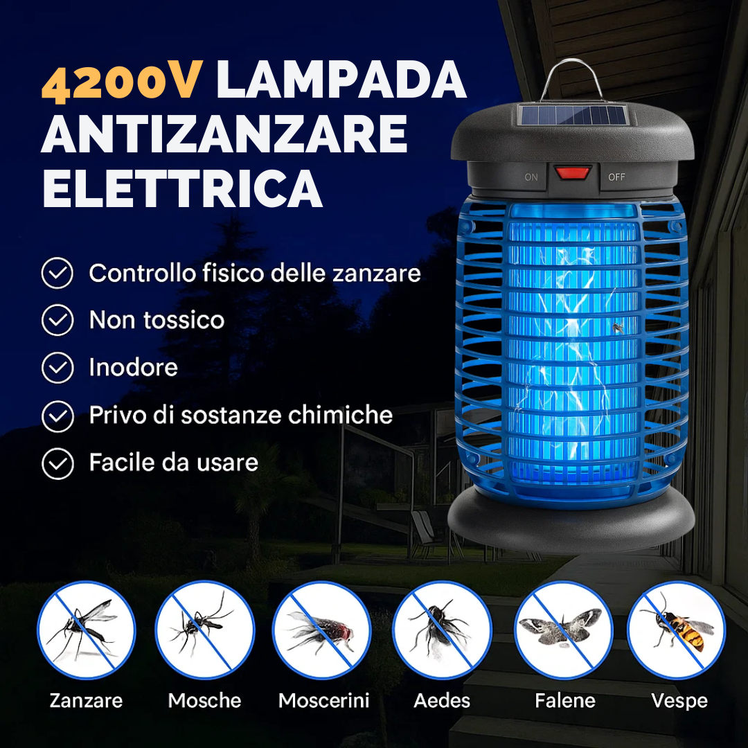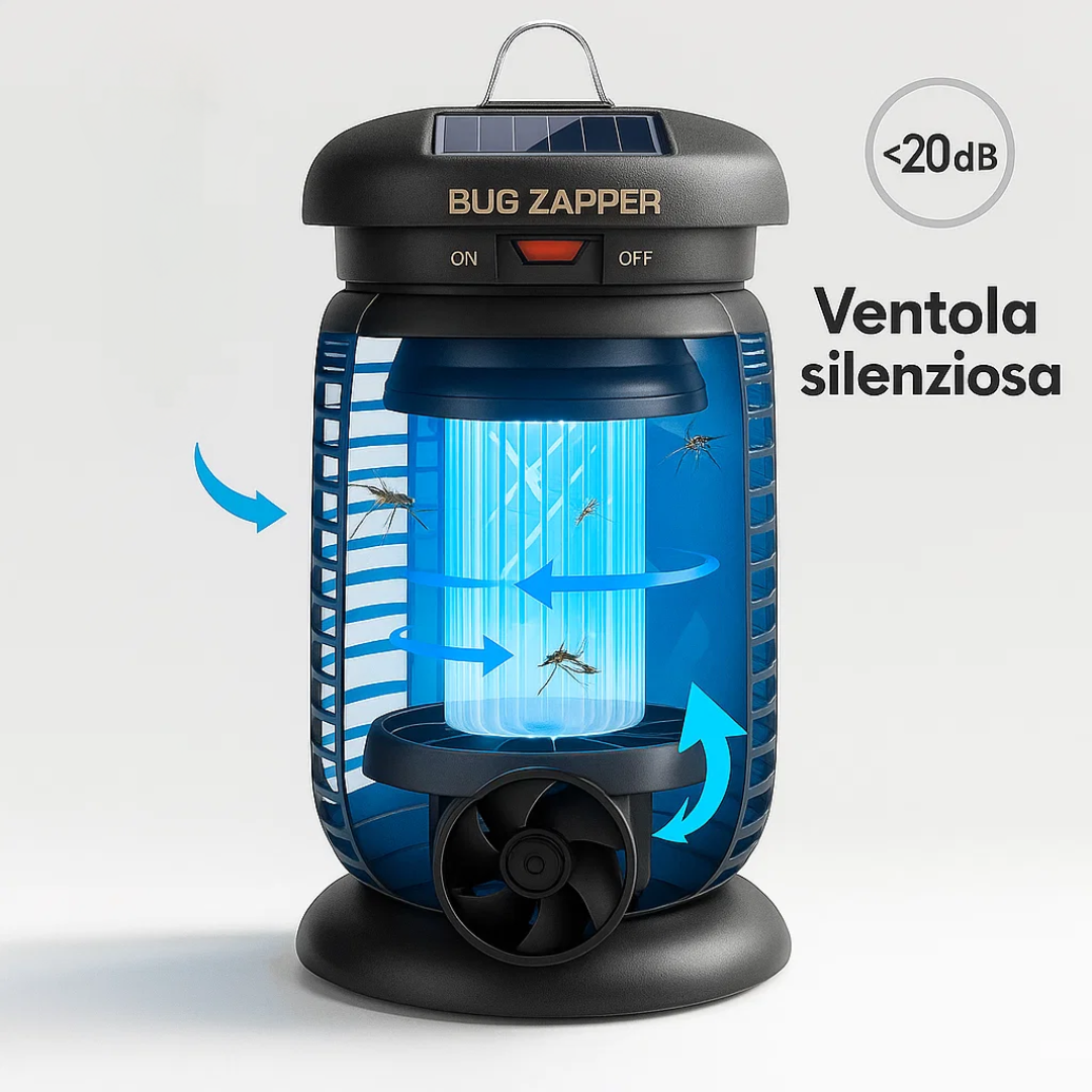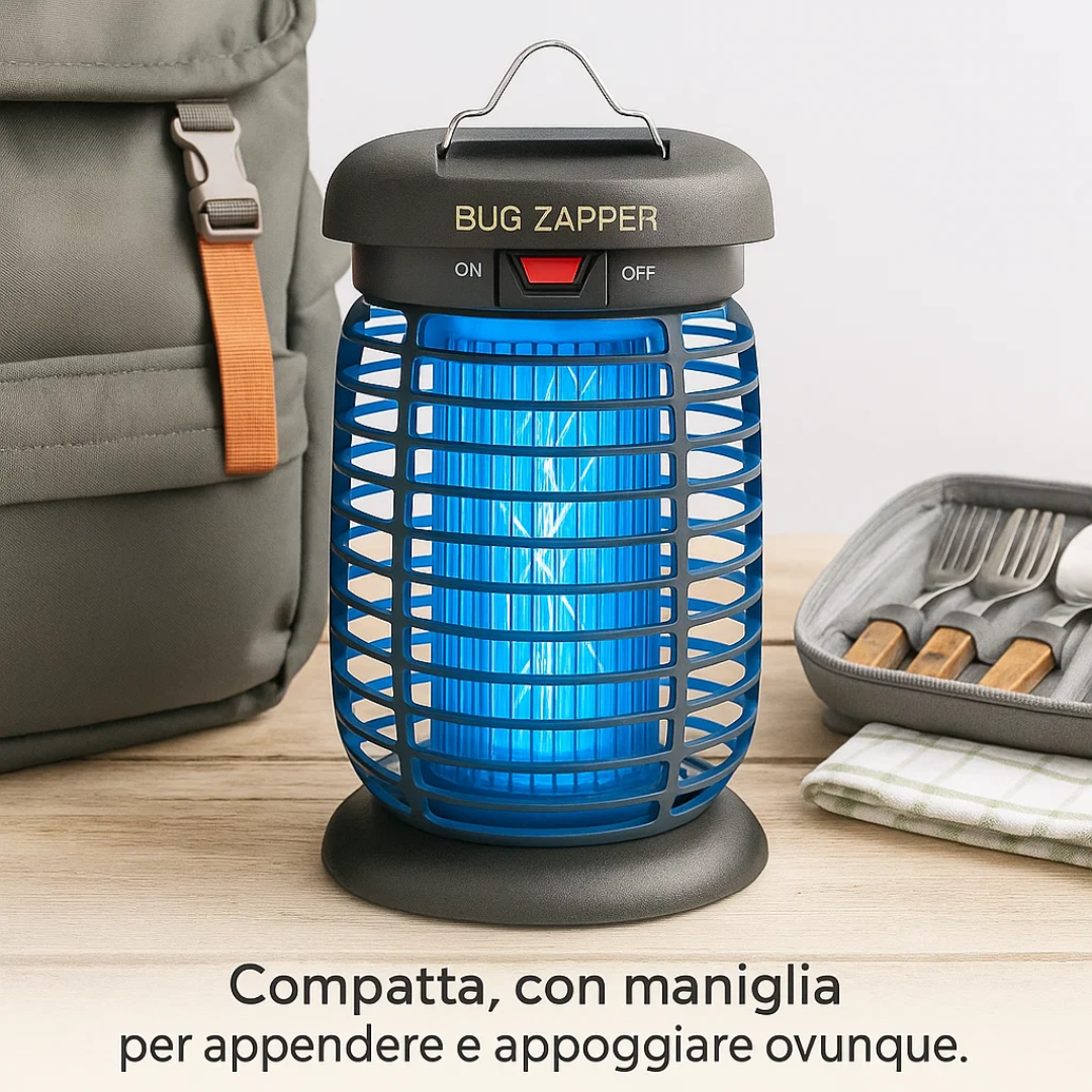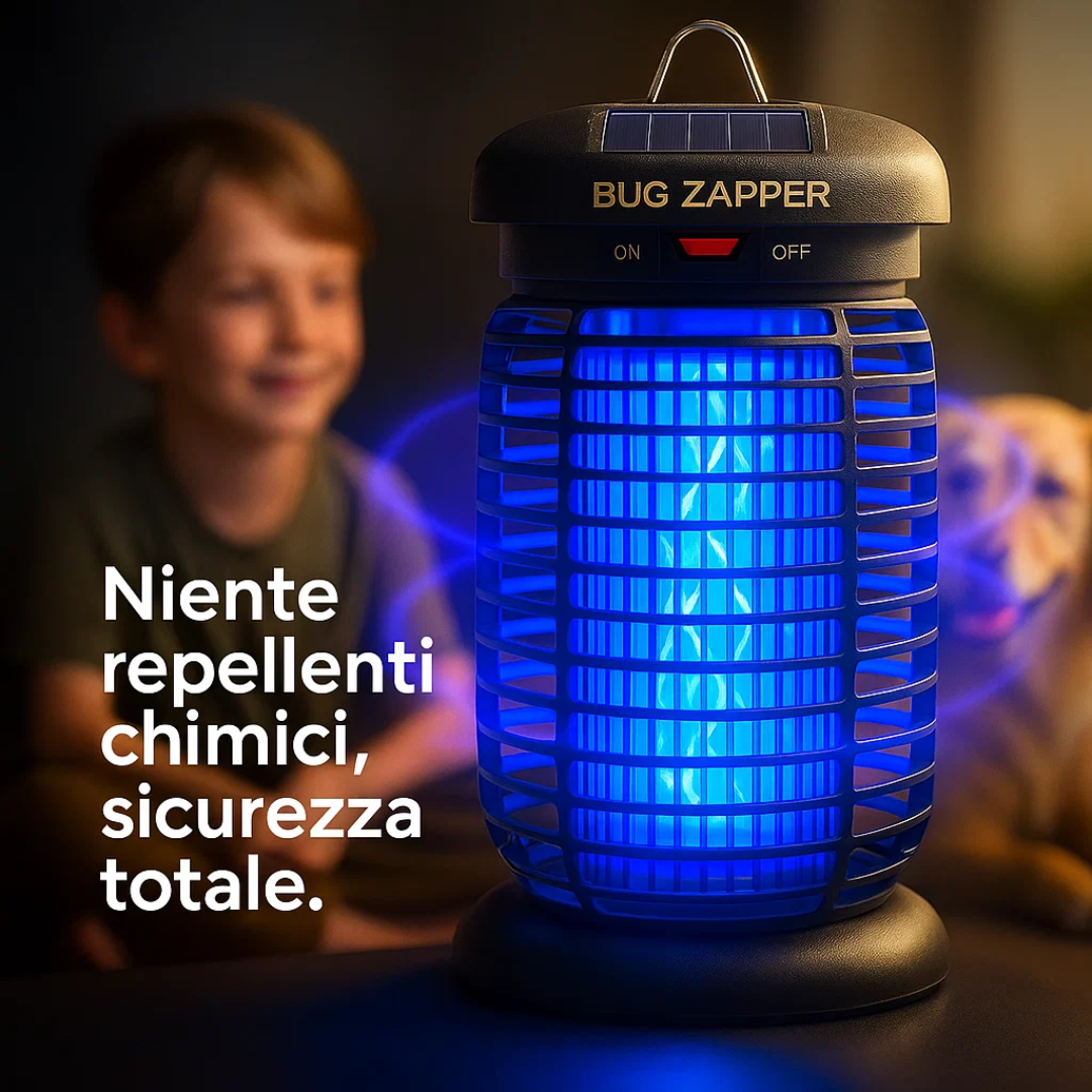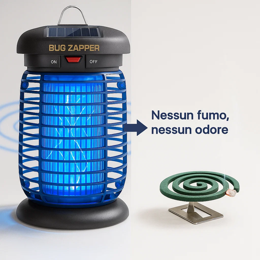 "Mi piace molto il fatto che sia ricaricabile con il pannello solare. Niente batterie né cavi! Uccide le zanzare rapidamente e la luce LED è sufficiente per vedere intorno alla tenda."